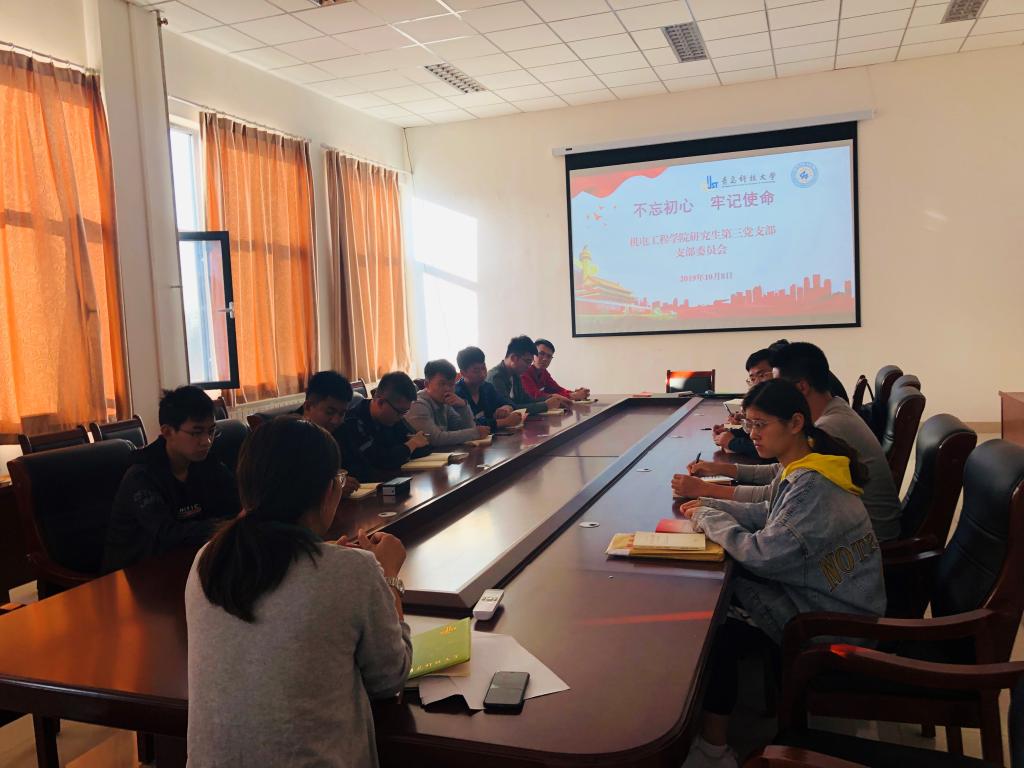 为认真贯彻落实学校“不忘初心、牢记使命”主题教育工作安排,激发研究生新生党员树立正确的人生观、价值观,强化自身的责任意识和使命担当精神,营造爱国爱校氛围、凝聚奋进力量,10月8日下午,太阳成tyc7111cc研究生第三党支部在机电楼518会议室召开 “不忘初心再出发,牢记使命勇担当”主题教育会议,公司党总支副书记兼副经理王伟参加并主持了会议。
