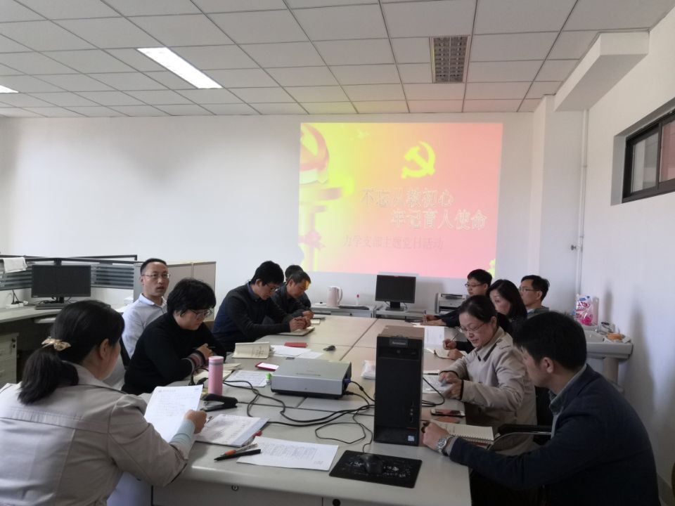 10月15日下午两点,力学支部在机电楼221办公室开展了“不忘从教初心,牢记育人使命”的主题党日活动,本次活动遵循校组织部10月党支部组织生活指导意见,按照公司党总支《关于开展“不忘初心、牢记使命”主题教育的实施方案》推进,全体党员参加。