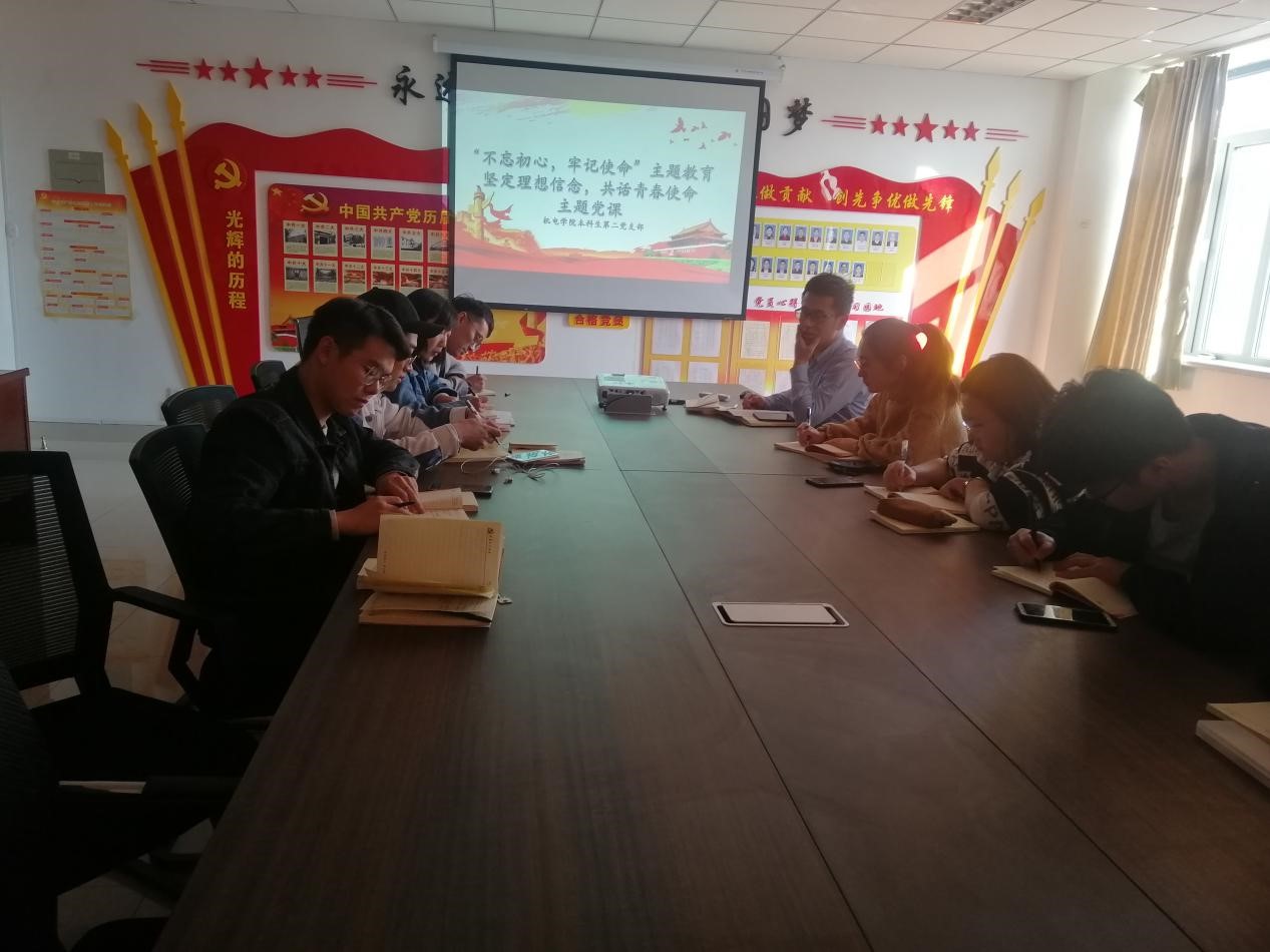 为了深入学习“不忘初心、牢记使命”主题教育,10月29日下午,太阳成tyc7111cc本科生第二党支部开展了“坚定理想信念,共话青春使命”主题党课,本次党课由党支部书记曲智强主持,党支部全体党员参加会议。