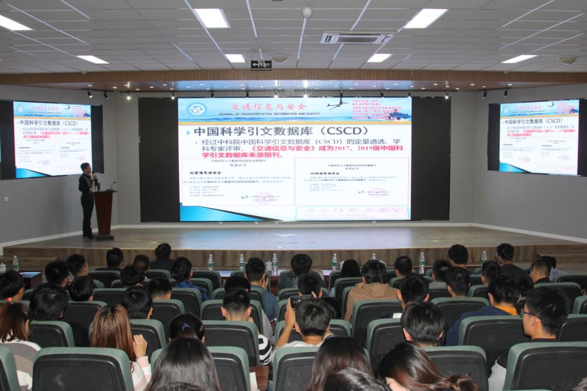 徐堃教授作了主题为《学术论文的“颜值担当”》的演讲。首先,徐堃教授从期刊的发展情况、现状分析、未来重点报道方向、重点专栏等方面对《交通信息与安全》期刊做了简要介绍;之后,徐堃教授主要从如何提升学术论文的“颜值”,综述论文、统计分析类论文、系统研发类论文的常见问题,投稿人与编辑部的沟通技巧三个方面进行讲解。最后,徐堃教授与师生们交流互动。师生们积极提问,徐堃教授从审稿人和期刊编辑的角度,专业详尽地为师生们答疑解惑,师生们都获益匪浅。