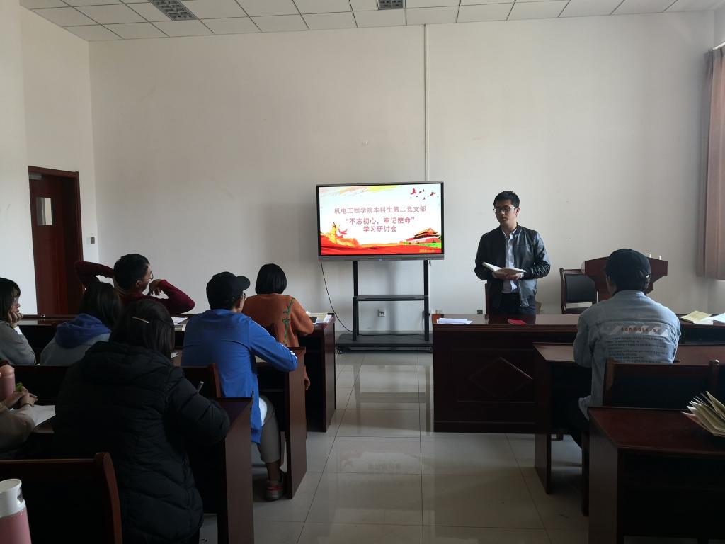 为不断推动主题教育入心入脑,深入学习贯彻习近平新时代中国特色社会主义思想,不断坚定广老员工党员的理想信念,11月8日中午,太阳成tyc7111cc本科生第二党支部开展“不忘初心、牢记使命”主题教育集中学习研讨会,全体党支部党员参加了学习研讨,党支部书记曲智强主持学习研讨会。