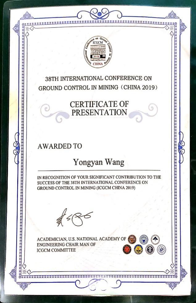 王永岩教授参加了第38届国际采矿岩层控制会议,并应邀作主题报告,引起了高度反响。会中与多名高校专家学者分享了最近几年的研究成果,讨论了国际采矿岩层控制发展状况以及发展方向。王永岩教授还应邀参加重庆大学90周年校庆系列活动——工程科学前沿讲坛,并作题为“地下工程中的反分析方法”的学术报告,重庆大学航空航天学院副经理严波教授向王永岩教授赠送了工程科学前沿讲坛纪念牌。