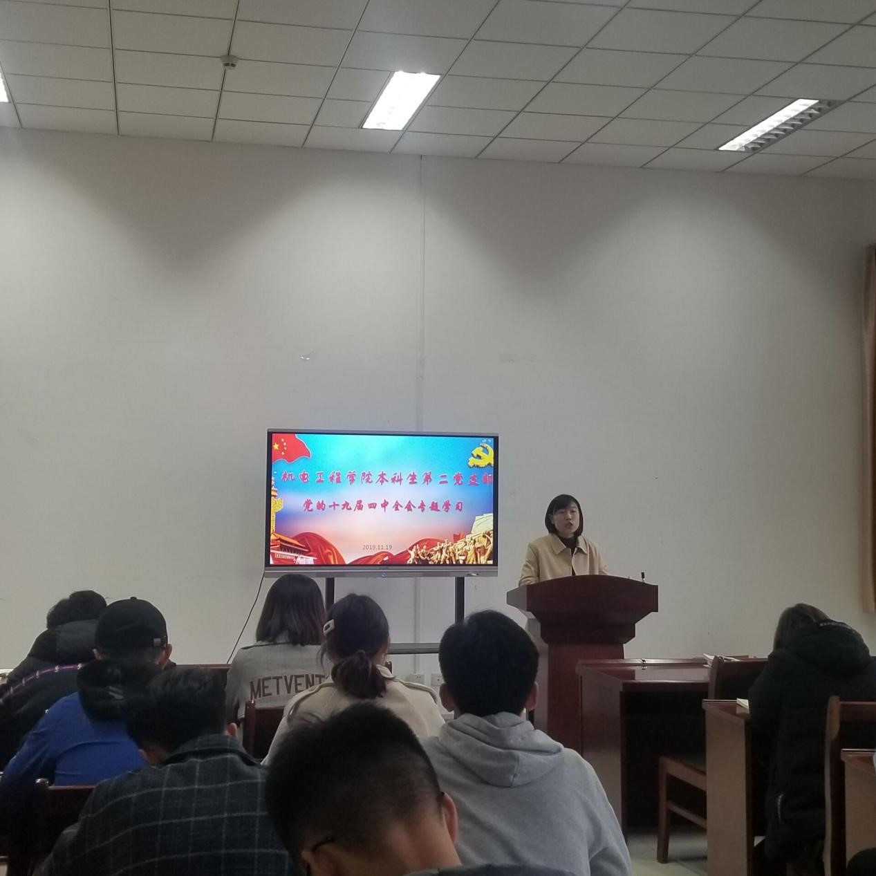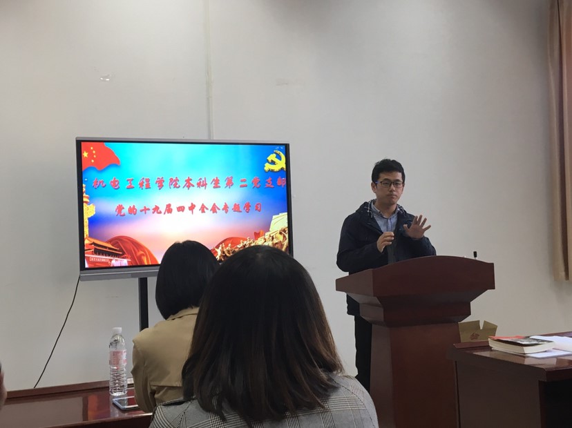 11月19日,太阳成tyc7111cc本科生第二党支部在机电大楼529召开了党的十九届四中全会专题学习,本次会议重点围绕习近平总书记在党的十九届四中全会上的报告和重要讲话的精神做交流发言,支部书记曲智强主持学习。