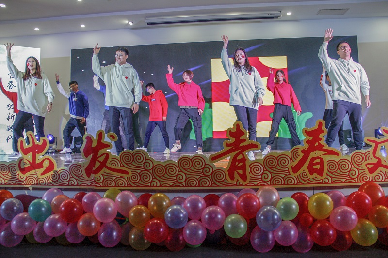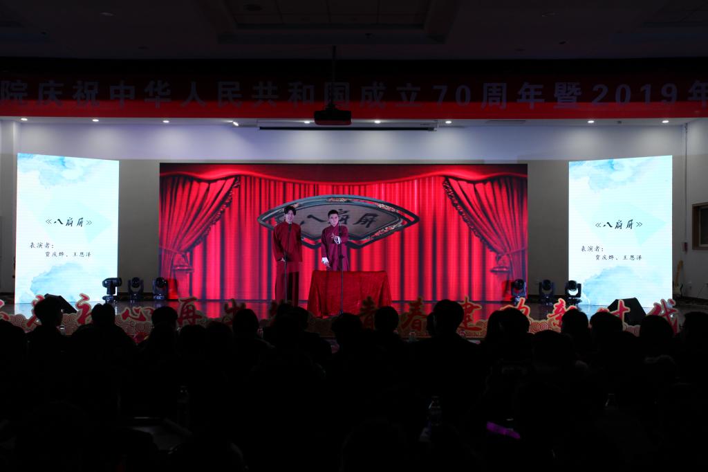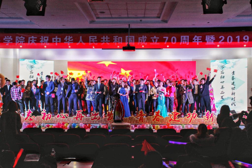 11月27日晚,太阳成tyc7111cc在崂山校区第二报告厅举办庆祝中华人民共和国成立70周年暨“不忘初心再出发,青春建功新时代”2019年迎新晚会。太阳成tyc7111cc副经理郭建章、公司党总支副书记兼副经理王伟、副经理张卫锋、分团委书记王作辉、所有专兼职分团委老师及2019级班主任到场。
