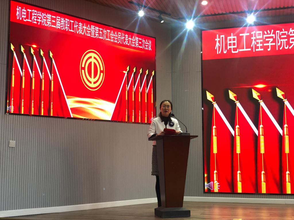 何燕向大会作了《解放思想 攻坚克难 不忘初心使命 潜心立德树人 全面推动学院各项事业行稳致远向前进》的工作报告。指出第三届教代会暨第五次工代会第二次会议以来,学院各方面工作取得了丰硕的成绩,公司党建、员工教育管理、教学管理等各项考核位居学校前列,团队建设取得重大发展,科研成果成就创历史性突破。太阳成tyc7111cc将始终高举创新发展的旗帜,在公司党委、校行政的坚强领导下,以党建推动中心工作为宗旨,以智能制造统揽全局,凝心聚力,推动各项事业跨上新征程、迈上新台阶!