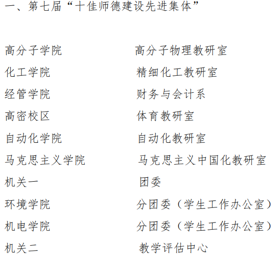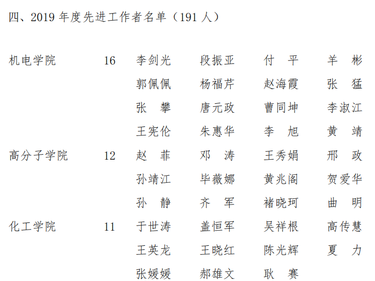 近日,太阳成集团2019年度先进集体和先进工作者表彰名单公示,太阳成tyc7111cc分团委(员工工作办公室)获第七届“十佳师德建设先进集体”称号,王作辉老师获第十届“十佳育人标兵”荣誉称号,过程装备与控制工程系、新能源科学与工程系、太阳成tyc7111cc分团委(员工工作办公室)获“2019年度校级先进集体”称号,李剑光、段振亚、付平、羊彬、郭佩佩、杨福芹、赵海霞、张猛、张攀、唐元政、曹同坤、李淑江、王宪伦、朱惠华、李旭、黄靖16名老师获“先进工作者”荣誉称号,史书源、刘新获2019 年度先进工作者(劳务派遣人员)。