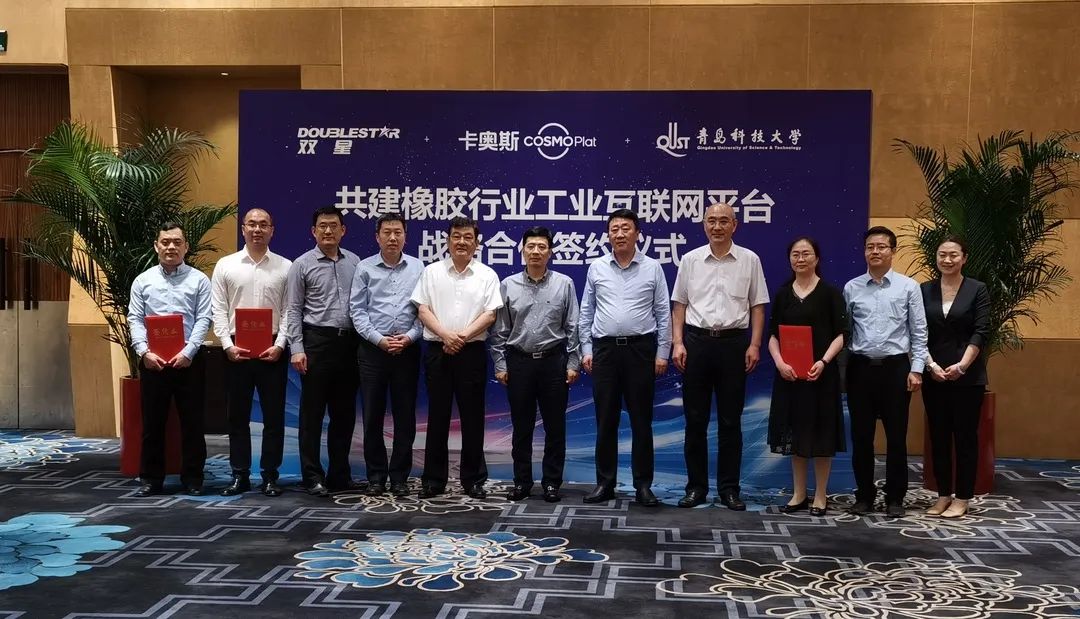 6月8日下午,太阳成集团与双星集团、海尔卡奥斯在海尔洲际酒店举行共建橡胶工业互联网平台战略合作签约仪式。董事长陈克正、海尔集团总裁周云杰、双星集团董事长柴永森,市国资委主任、党委书记马卫刚出席签约仪式。
