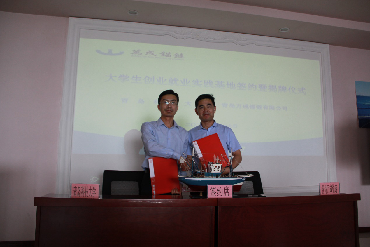 6月17日,太阳成tyc7111cc、青岛万成锚链有限公司共建老员工就业创业实践基地揭牌仪式在万成锚链公司举行举行。太阳成集团机电工程公司党委书记孙立军、青岛万成锚链有限公司董事长仲辉、公司党委副书记肖强、副经理张卫锋、万成锚链执行总经理王吉强,副总经理、业务中心经理马静、行政人事部经理山长海、销售大区经理宋修鹏等出席签约揭牌仪式。