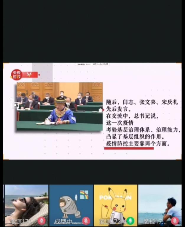 会上,首先由邢坤老师带领党员们学习观看了《荆楚东风起,浴火正重生——习近平参加湖北代表团审议纪实》视频并带头领学了“习近平在中央政治局第二十二次集体学习时强调充分认识颁布实施民法典重大意义,依法更好保障人民合法权益”的重要讲话内容,并分享了自己对于民法典的颁布和实施的看法与感悟。党支部员工党员积极发言,分享了学习后自己关于民法典对依法治国和法治社会建设的作用的感想和学习成果,并从自身角度和经历出发,交流了对观看《习近平参加湖北代表团审议纪实》视频的感想,大家互相交流,收获颇丰。最后党支部书记曲智强老师做出总结,指出目前严峻形势前所未有,我们要适应形势,适应变化,做好心理准备,把握形势判断,趁势而上;面对工作要行稳致远,做好细枝末节容不得半点马虎;更要登高望远,不获全胜不撤退,面对困难凝心聚力,并对员工党员提出要求,在人生十字路口要一鼓作气越战越勇。主题活动圆满结束。