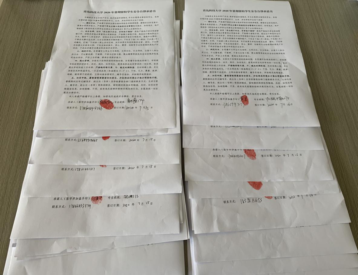 线下,辅导员就暑假留校员工召开会议,强调遵守学校疫情防控管理规定,做好日测体温等常规工作,尤其是做好消防安全等工作,并与留校员工签订《安全自律承诺书》。