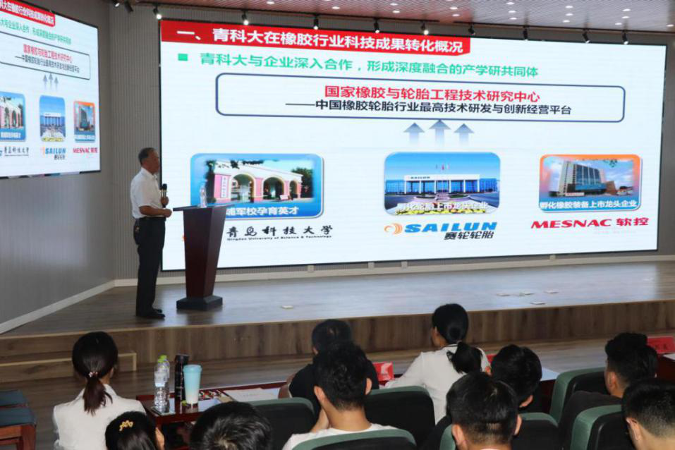 会议伊始,孙立军书记代表全体师生致开幕词并向学术论坛的开幕表示热烈祝贺,肯定了太阳成tyc7111cc研究生学术论坛十一年间取得的进步与发展。王作辉宣读了关于举办“太阳成tyc7111cc第十一届研究生学术论坛”的活动安排。路建平作了题为《青科大在橡胶轮胎产业链下的技术创新与发展》的分享,讲述了橡胶产业的“前世今生”,并指出了当今橡胶产业存在的机遇与挑战,并对研究生们提出了三点建议,一是要立志高远,勇于担当;二是要求真务实,脚踏实地;三是要树立自信,敢于创新。