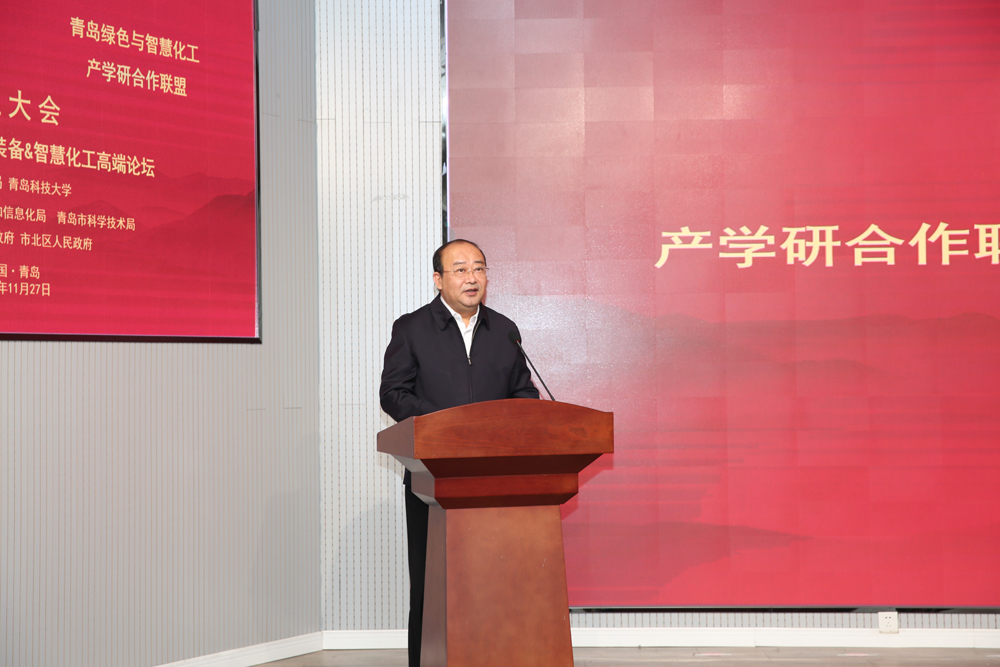 李勇向两个联盟的成立表示热烈的祝贺,向前来参加会议的各位领导表示热烈的欢迎。他指出,智能制造与化学化工相关学科是公司优势特色学科,为我国特别是山东省的机械、化工、制药行业培养了大批杰出人才。学校将充分发挥两个产学研合作联盟的桥梁纽带作用,积极打造成由“政府主导、行业引导、高校与企业合作共建”的“科技+孵化+转化”产学研协同发展机制,为青岛市以及山东省机械与化工行业注入源源不断的生机与活力。