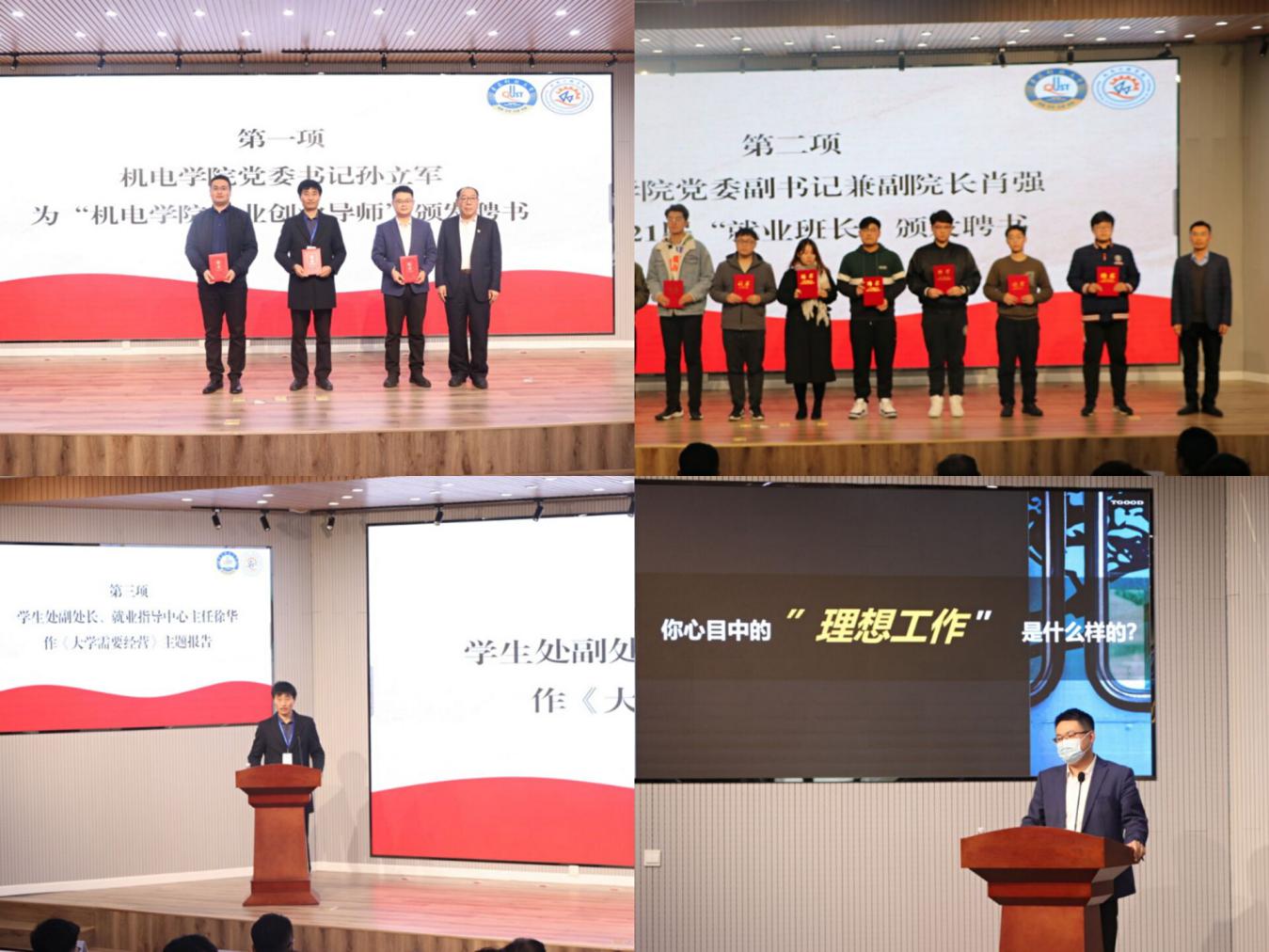 会上,公司党委书记孙立军为徐华、于江波、孟祥龙颁发“太阳成tyc7111cc就业创业导师”聘书,公司党委副书记兼副经理肖强为2021届“就业班长”颁发聘书,员工处副处长徐华作《大学需要经营》主题报告,青岛特锐德电气股份有限公司人力资源中心主任孟祥龙作《你就是求职路上那个最靓的仔》主题报告。毕业班辅导员王娟娟、王玉凯、于超在“就”赢未来——就业小讲堂上分别就《太阳成tyc7111cc2021届毕业生就业形势分析》《如何签约?》《简历:找工作的敲门砖!》作了分享。毕业生纷纷表示,就业促进会解答了毕业生需要迫切了解的问题,为毕业生进一步明确就业方向、树立就业信心、提升就业技能打好坚实基础。