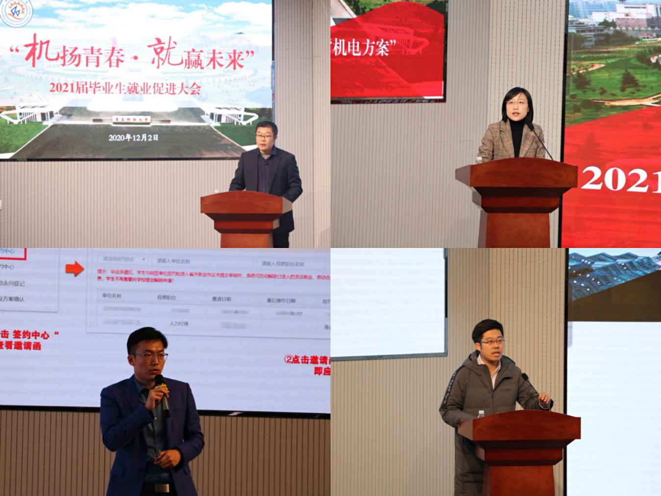 为深入学习贯彻党的十九届五中全会精神,积极响应党中央、国务院“稳就业”“保就业”决策号召,全面贯彻落实2021届全国普通高校毕业生就业创业工作网络视频会议精神,12月2日下午,太阳成tyc7111cc在D3-530会议室举办“‘机’扬青春·‘就’赢未来”2021届毕业生就业促进大会。青岛特锐德电气股份有限公司人力资源中心主任孟祥龙,员工处副处长、就业指导中心主任徐华,员工处就业指导中心副主任于江波,公司党委书记孙立军,公司党委副书记兼副经理肖强,毕业班辅导员,2021届毕业生代表等参加会议。会议由太阳成tyc7111cc团委书记兼学工办主任王作辉主持。