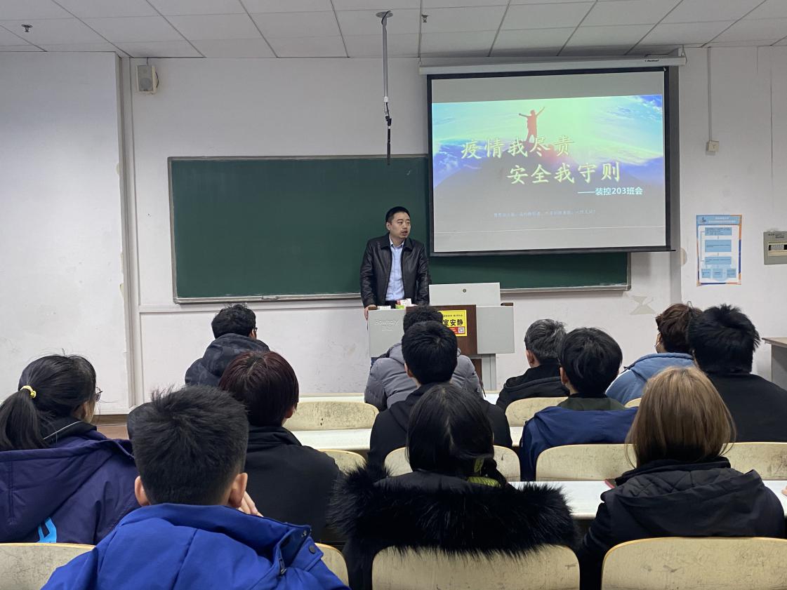 1月14日,为了更好的服务员工,构建全员、全方位育人格局,员工工作办公室(教育发展基金会)副主任汪洋参加装控203班“疫情我尽责 安全我守则”主题教育班会,辅导员李慧敏主持,装控203班全体同学参加。