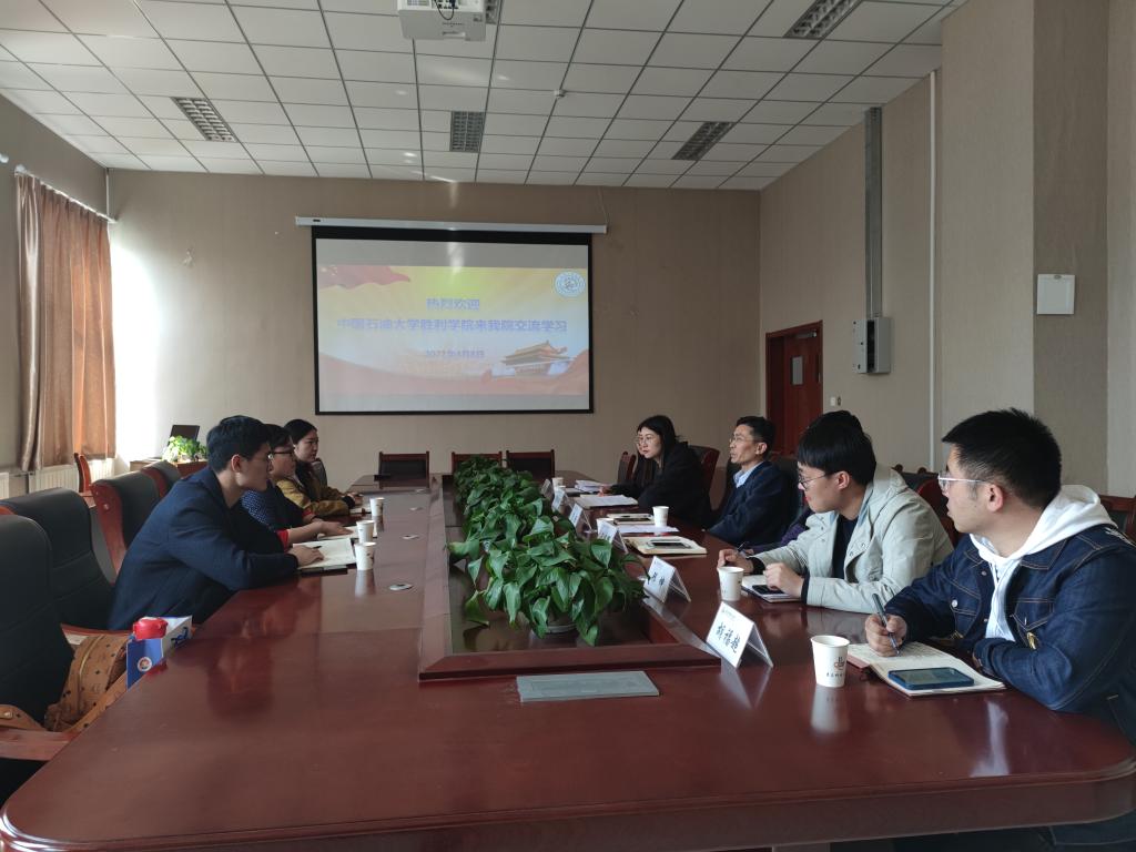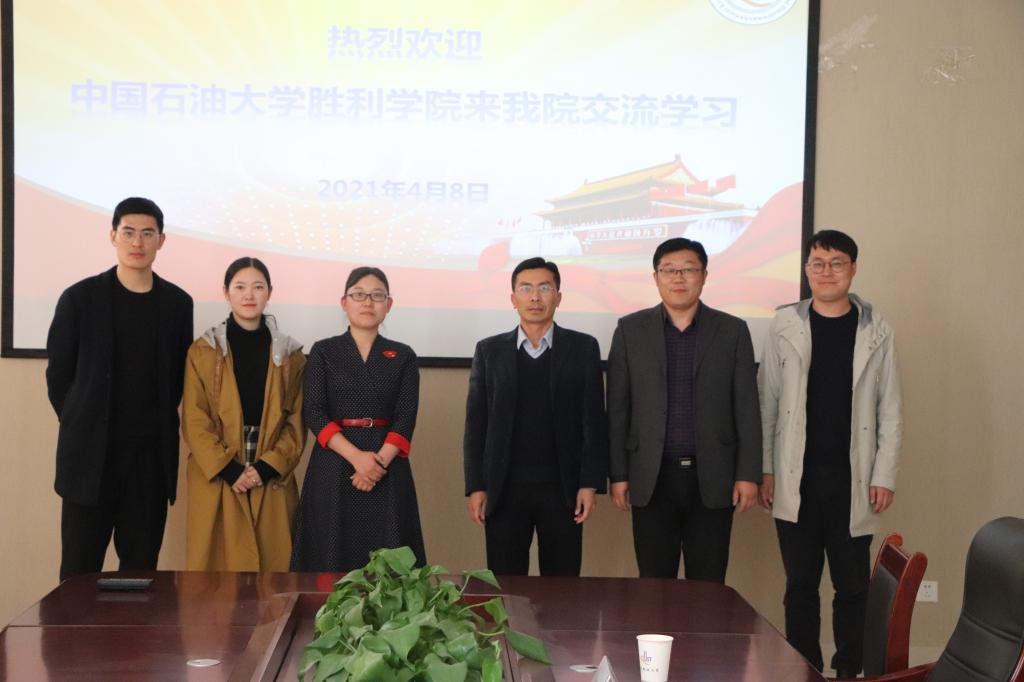 4月8日上午,中国石油大学胜利学院一行来公司交流工作。中国石油大学胜利学院油气工程公司党总支副书记李聪聪、团总支书记伍佳慧、辅导员李文强参加交流学习。公司党委副书记兼副经理肖强、学工办主任兼团委书记王作辉以及学院辅导员代表参加会议。