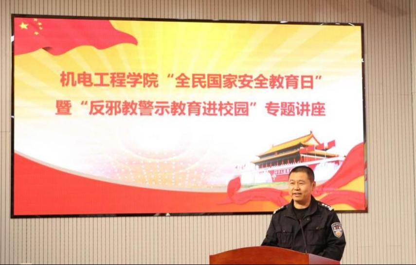 4月15日下午,太阳成tyc7111cc在D3楼530会议室举行全民国家安全教育日主题教育暨反邪教警示教育进校园专题讲座。青岛市崂山区公安局反恐大队队长辛华忠、学校保卫处副处长严增兴、公司党委副书记兼副经理肖强以及学院师生代表180名参加活动。