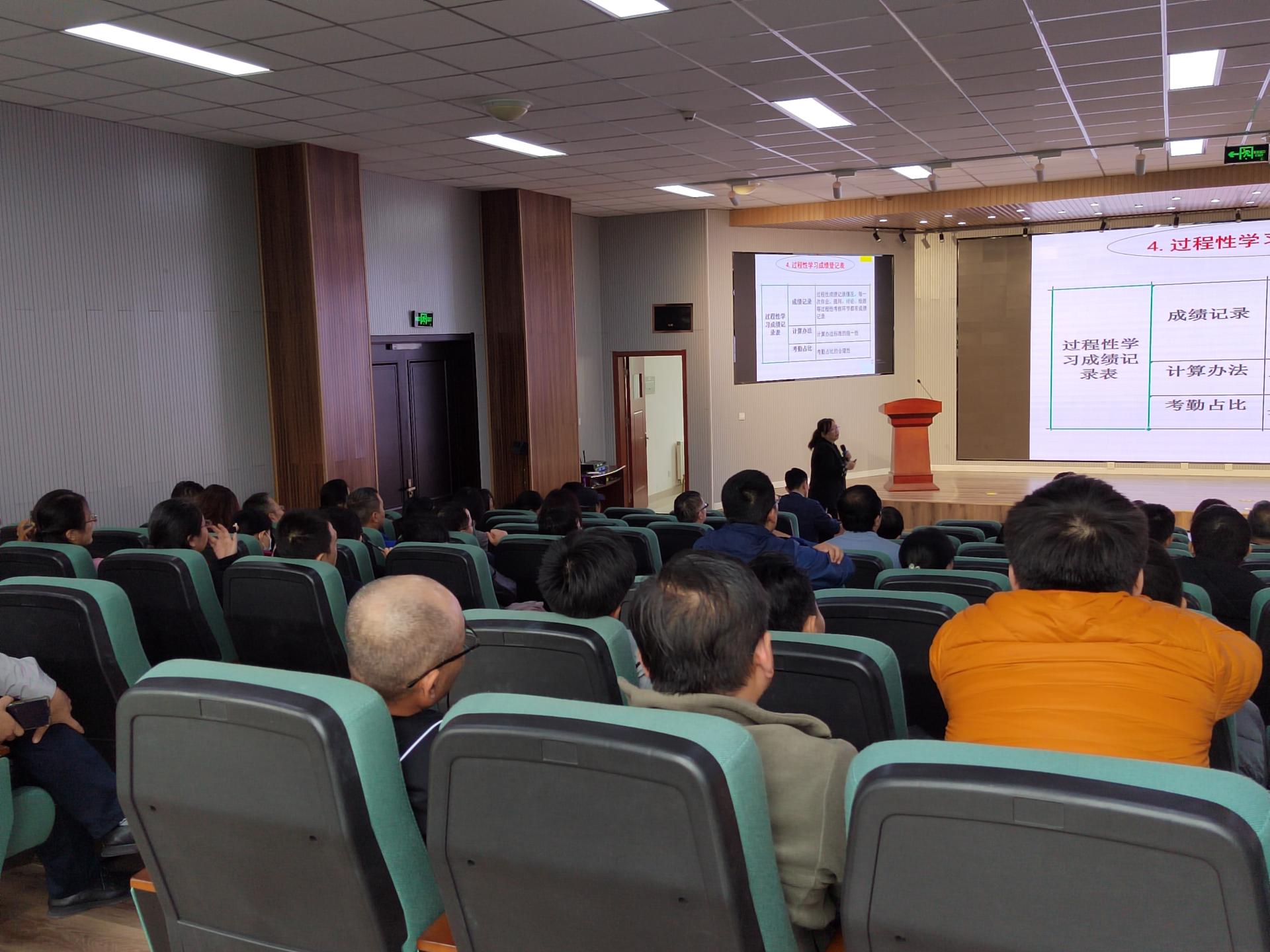 10月26日下午,学院以全院教职工大会为契机,组织全体教师开展了课程评价材料归档培训。会议由李剑光副经理主持,教务处质量科郭韶升老师和学院评建办主任付平老师分别作了专题报告。