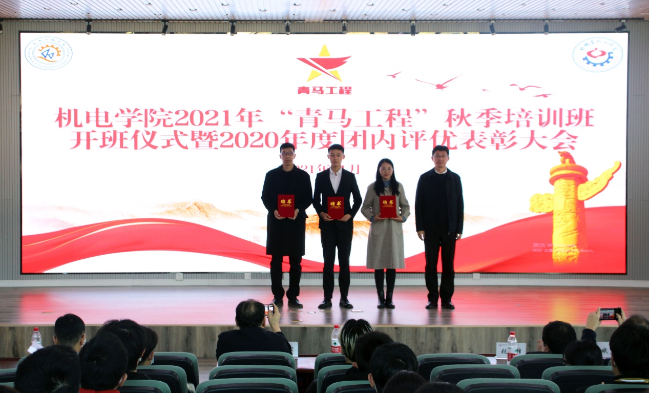 张卫锋为2020年度优秀团员代表、优秀团干部代表颁发证书。