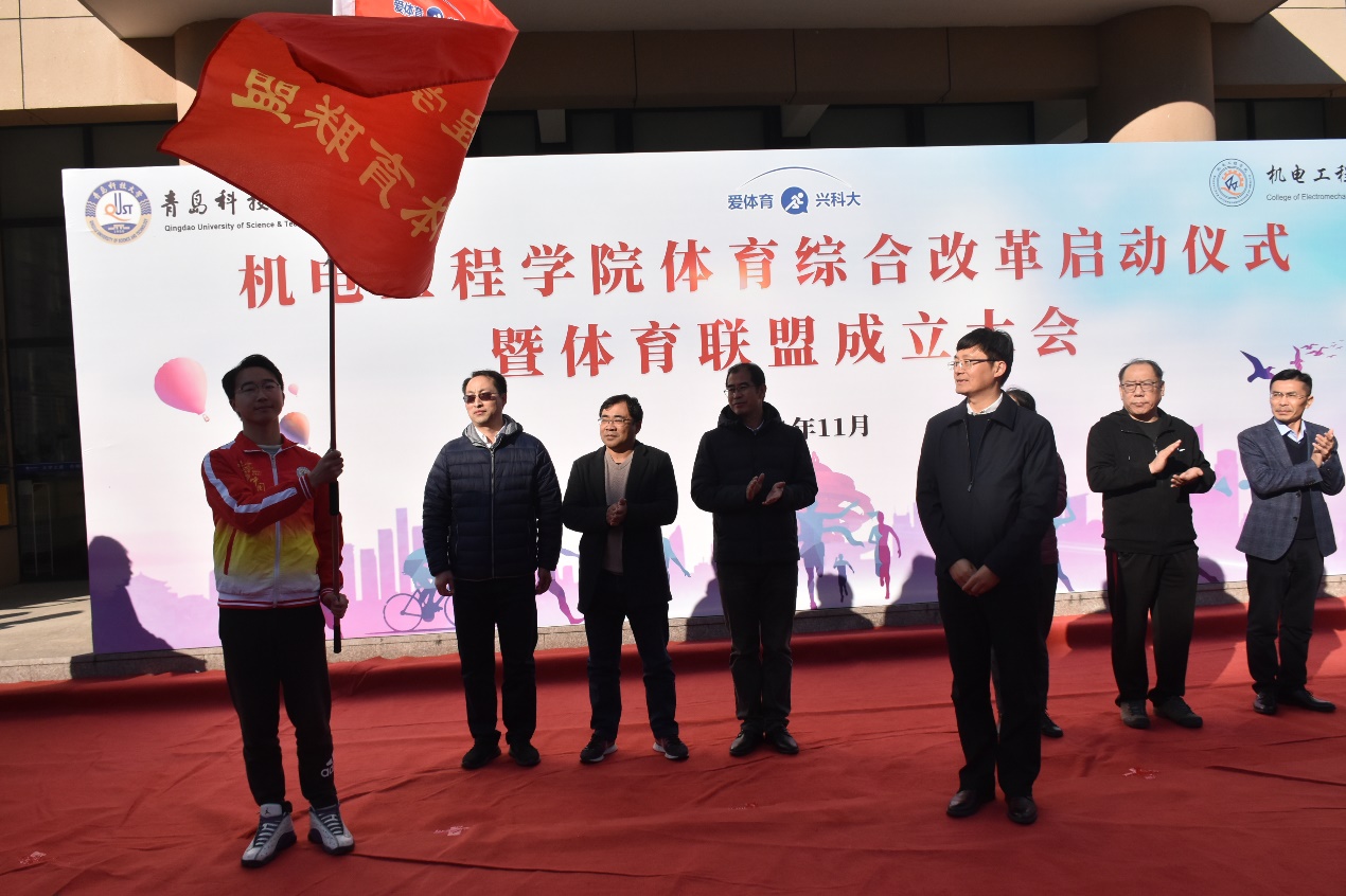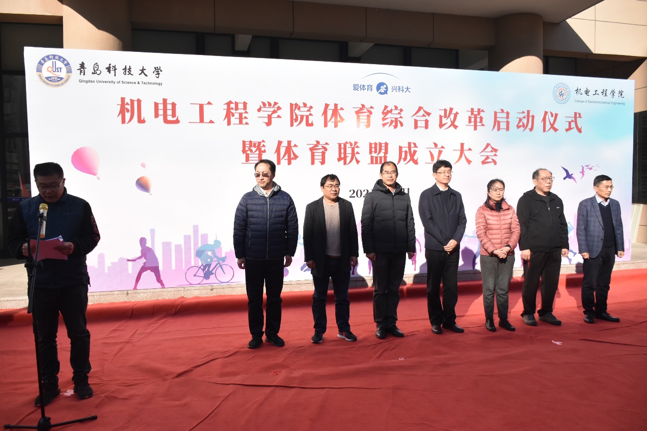 为积极响应学校体育综合改革,助力学院体育工作高质量发展。11月9日下午,太阳成tyc7111cc体育联盟综合改革启动仪式暨体育联盟成立大会举行在机电大楼前举行。学校团委书记毛常明,员工处副处长曹永俊,公司党委书记孙立军,太阳成tyc7111cc经理何燕,公司党委副书记兼副经理肖强,副经理张卫锋、李剑光以及学院团委全体专职兼职辅导员以及员工代表参加本次活动。