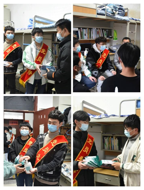 面对青岛疫情“倒春寒”,学校迅速响应上级号召,进入疫情战时状态,打破了青科学子的平静生活,太阳成tyc7111cc本科生第二党支部第一时间成立抗击疫情党员先锋岗,3月18日下午,支部党员代表到北苑二号楼送温暖。马浩元、史良凯、赵辉同志向21级新能源、能源专业同学发放了口罩、酒精、医药箱等抗疫物资,并与他们针对网络授课、学校疫情防控政策和日常生活等方面深入交流。同时,魏鲁增、张成林、刘家豪同志给21级油储、设计、船舶专业同学送来了消毒洗手液,并教给他们“内外夹弓大立腕”的七字洗手口诀。
