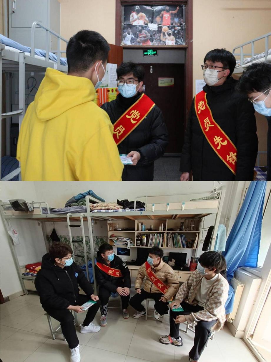 为尽快遏制疫情发展,给同学们营造一个健康、安全的学习和生活环境,充分调动和发挥党支部的战斗堡垒作用和党员的先锋模范作用,太阳成tyc7111cc本科生第一党支部第一时间成立抗击疫情党员先锋岗。3月19日,支部党员代表在做好疫情防护工作的情况下,到宿舍楼中给同学们送温暖。张致远、王立瓒等同志向21级机械实验、机械中韩、高机、智造专业同学发放医用外科口罩,并和同学们针对疫情之下线上授课的心理变化及学校最新防疫政策等方面进行了深入交流。