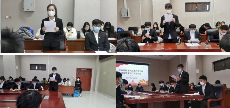 会议按照党组织接收预备党员的程序严格进行,刘舒彤、赵陆通、聂保胜、叶松等14名发展对象在党支部全体党员的注视中向党组织汇报了自身对党的认识、入党动机、个人经历、家庭情况以及在校表现等情况。接着,由入党介绍人向与会成员介绍了发展对象在思想、学习、工作、生活中的情况,王娟娟同志向大会报告了各位发展对象的政治审查情况,与会党员对发展对象是否符合党员条件发表了意见。