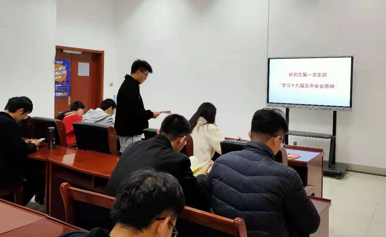 11月17日14时,太阳成tyc7111cc研究生第一党支部在机电楼529会议室开展“十九届五中全会精神”学习交流。