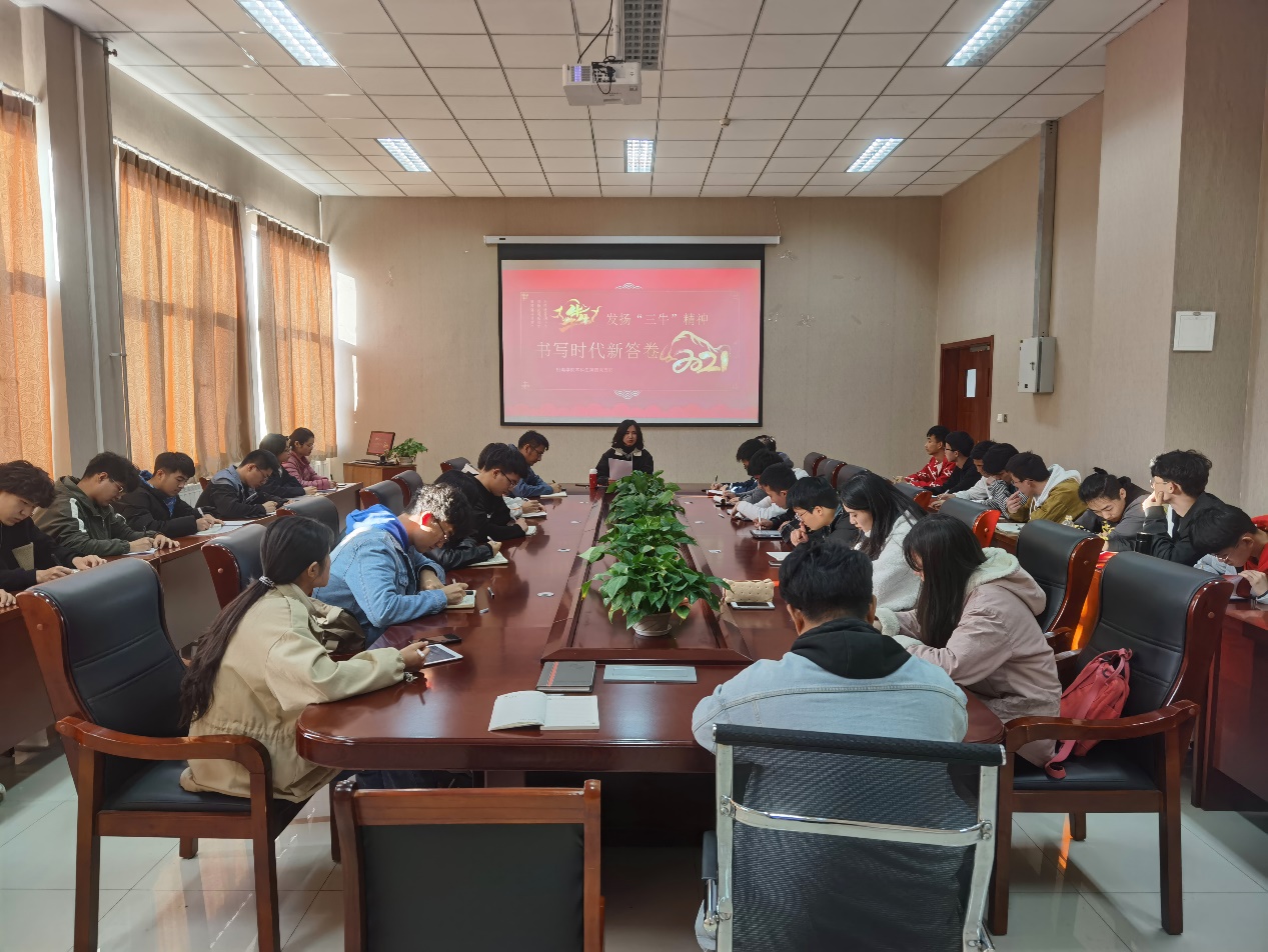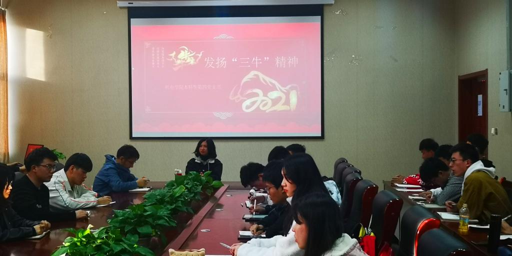 3月23日,结合习近平总书记日前在全国政协新年茶话会上的讲话精神,太阳成tyc7111cc本科生第四党支部召开“发扬”三牛”精神,凝心聚力干事,全面开创学校高质量发展新局面”主题党日活动。会议由党支部书记孙坤岩主持。