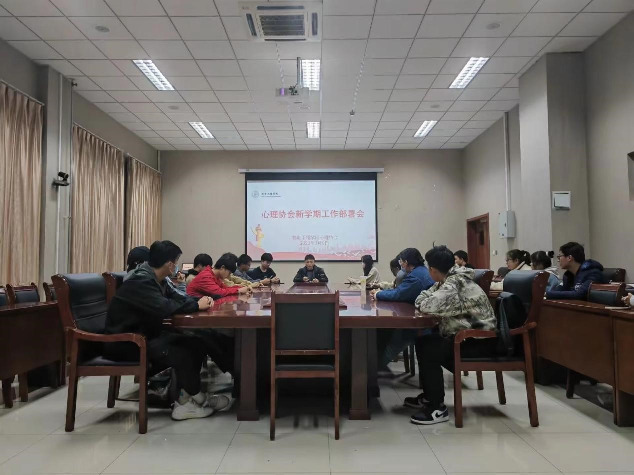 新学期伊始,为进一步做好学院心理安全稳定工作,做好新学期心理协会工作的安排,扎实推进员工的心理服务工作 ,3月9日晚,学院心理协会在机电楼518会议室召开了“新学期工作部署会议”。心理协会全体成员参加。