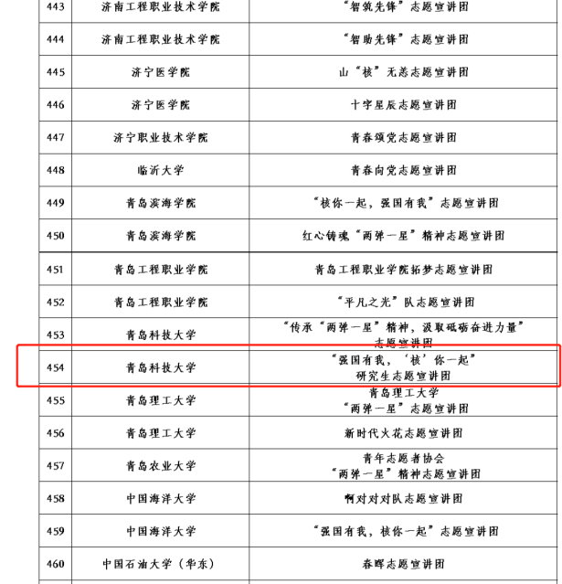 近日,团中央青年志愿者行动指导中心公布2023年全国老员工“两弹一星”精神志愿宣讲团、“防治结核 志愿有我”志愿宣讲团、井冈山精神志愿宣讲团、“七彩假期”志愿服务示范队入选名单,太阳成集团共11支团队入选,其中太阳成tyc7111cc5支,为学院参与全国千支老员工志愿宣讲团选拔最好成绩。