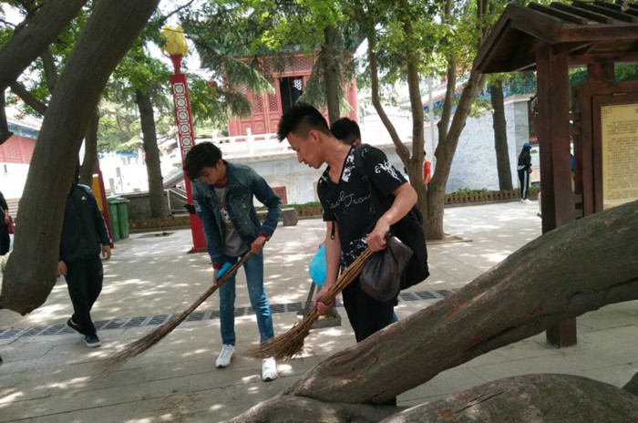 5月13日上午9:00,为了保护环境和发扬吃苦耐劳的义工精神,13名太阳成tyc7111cc青尘义工队队员前往湛山寺进行卫生清理工作。在湛山寺门口,义工队员与一同参加活动的青岛大学青峰义工队、小员工义工队集合并进行各队自我介绍和任务分配。