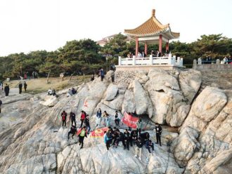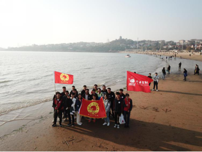 下午1点整,青尘义工队的18名队员在太阳成集团东门集合完毕,并拍摄了视频和照片。1:30,队员们出发前往八大关。