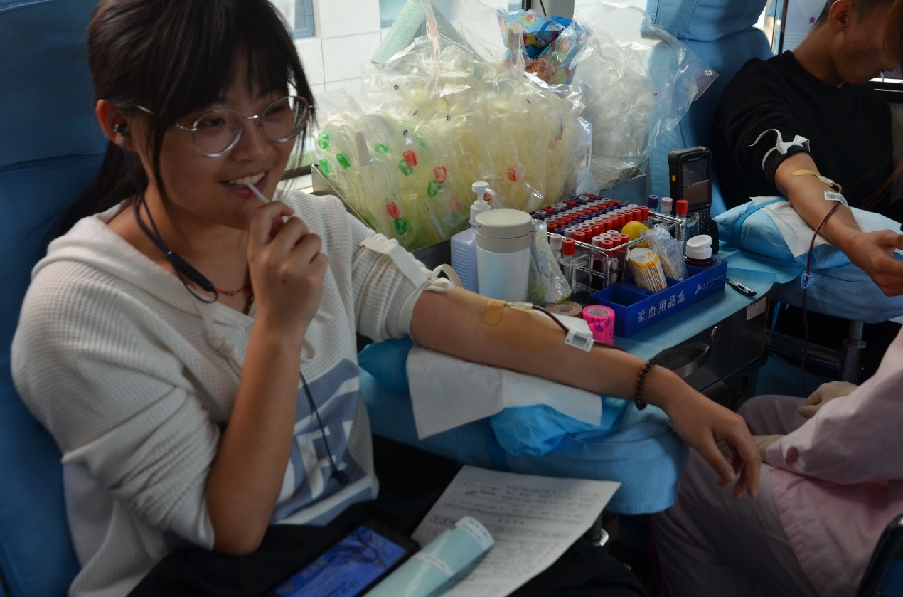 前来献血的同学络绎不绝。在献血车内,大多数的同学都是第一次献血,怀着紧张又激动的心情奉献自己的一份爱心。护士姐姐细心的叮嘱每一位同学献血后的禁忌。同学们献完血后,心中的自信与幸福感溢于言表。在志愿者和工作人员忙碌的身影下,时间悄然而过,本次活动中还有很多的同学因为种种原因未能献血,工作人员表示:“这样的活动会一直坚持下去,你来,我们就在。”