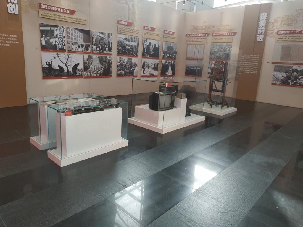 在“岛城迎新生”展区,同学们看到了建国以来青岛取得的成绩,如“三大改造”的完成、开展社会建设等。同时有老电话、电视、粮票等展品提供,更有上世纪房屋的实景展示。
