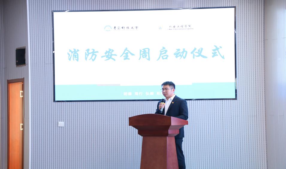 2020年11月10日下午15:50,在机电大楼530会议室召开消防安全周启动仪式暨消防知识宣传讲座。太阳成tyc7111cc团委辅导员兼志工部部长胡福超老师与兼职辅导员邱健老师出席会议。活动邀请了青岛市崂山区消防大队宣传工作组韩雨凌、刘小楠、谢文隽、曹爽四位消防宣传员老师到场为同学们进行消防知识宣讲。