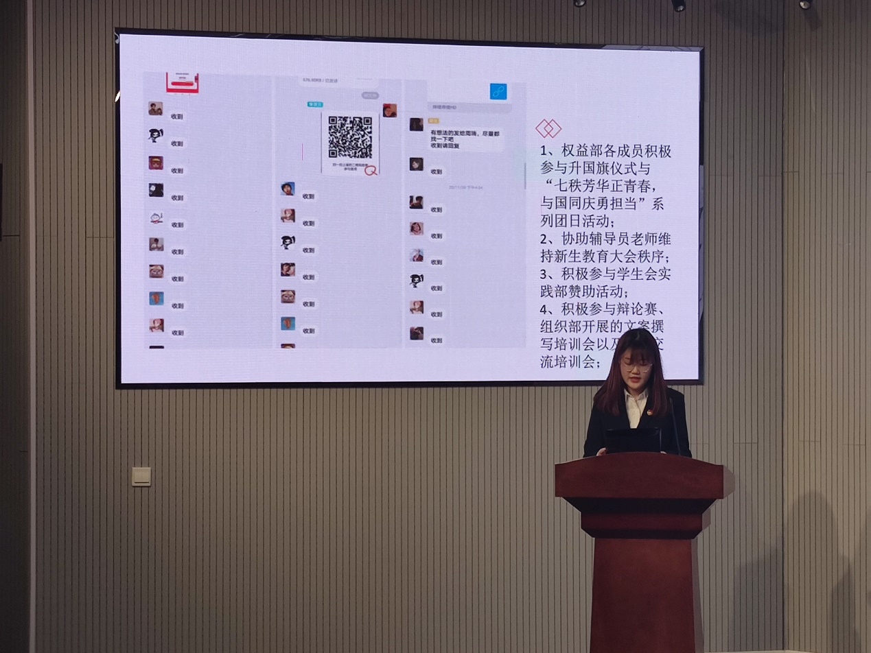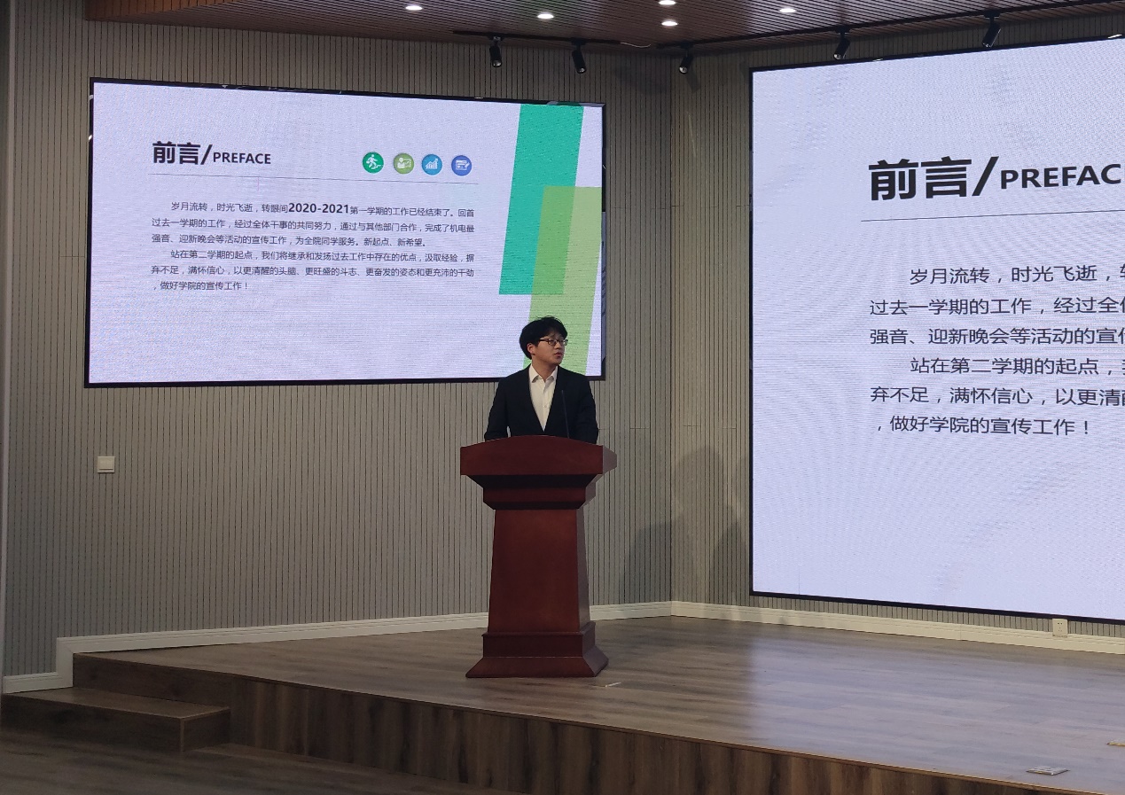 会议第二阶段,为全面落实2020-2021学年度第一学期太阳成tyc7111cc员工会的工作开展情况,各部门针对本部的工作情况面向员工会全体同学进行述职汇报 。