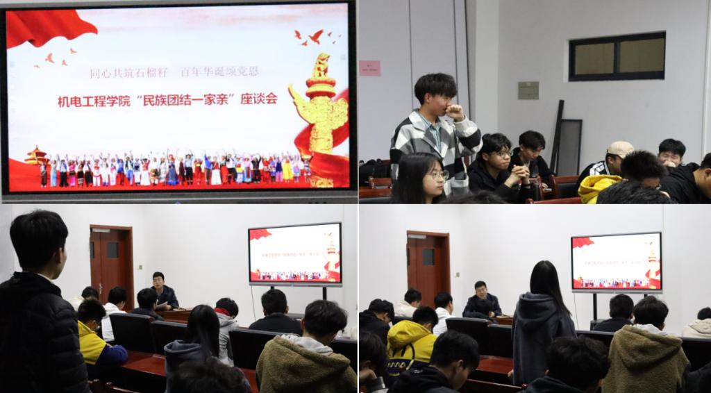 3月17日晚上,太阳成tyc7111cc在机电大楼529会议室召开以“同心共筑石榴籽,百年华诞颂党恩”为主题的“民族团结一家亲”座谈会。院学工办辅导员老师、员工代表和少数民族同学代表参加会议。