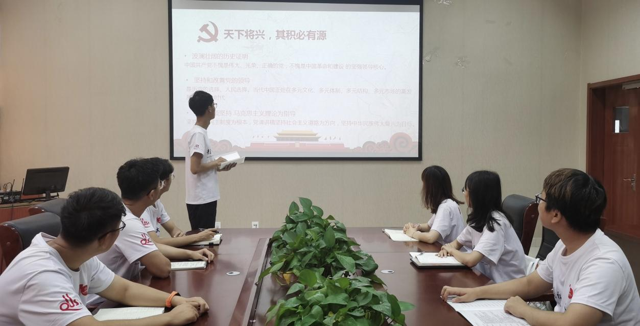 学习党史,坚定信念。阅读学习了这篇文章后,实践团成员互相分享了学习感受与真实感悟。实践团随即开展“学习党史,增强党性”的党史教育课,中国共产党具有的“践行初心、担当使命”这一跨越时空的精神传承和一以贯之的情怀担当引发了实践团成员的强烈共鸣与深刻体悟。