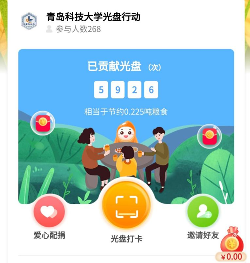本次“光盘打卡”活动载体——光盘打卡小程序,由免费午餐基金会提供。志愿者们通过扫描光盘来获得能量,五次打卡即可向雨花素食公益餐厅捐赠一次免费午餐。青尘义工队组建了太阳成集团光盘打卡队伍,我们在这里继续向全校同学呼吁:响应起来,参与进来,将勤俭节约的好习惯真正的付诸行动,共同节约粮食,保护环境。
