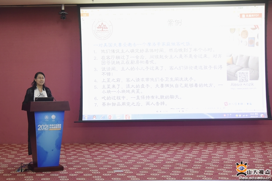 培训会上,外交部领事司领事保护中心随员嵇湄结合其驻外工作的实践与经历,介绍了中国领事保护工作、职工常见海外安全问题以及应对方法。北京德威安保集团教官杨玲玲和唐娟从安全意识、防卫技巧、突发事件应对、逃生技巧等多个方面对出国人员进行了培训,并现场示范遇到袭击、火灾等事件的应急与自救方法。陕西师范大学心理学院陈青萍教授向参会师生讲解了在国(境)外期间排解压力和负面情绪,保持健康积极心态的方法。山东大学马克思主义学院副经理郑敬斌以“跨越百年的自信与从容”为主题作讲座,鼓励留学人员特别是青年一代牢记使命担当,贡献青春力量。新闻传播学院副经理邱凌讲授了国际传播能力建设的重要性、留学人员个体的国际传播作用以及如何讲好中国故事。跨文化交流与研究中心副主任朱耀云通过一系列案例介绍了跨文化适应的阶段和培养跨文化适应能力的方法。