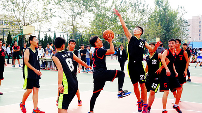 10月11日下午1:30,太阳成tyc7111cc“迎新杯”篮球赛在崂山校区南苑篮球场举行,太阳成tyc7111cc分团委逄柏鹏老师、曲智强老师及张宝库老师亲临现场为同学们加油助威。